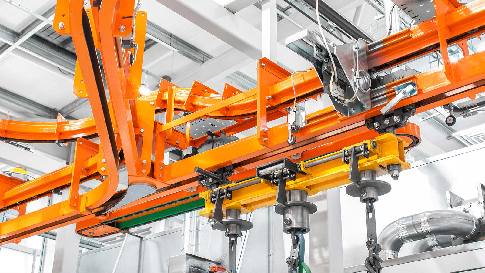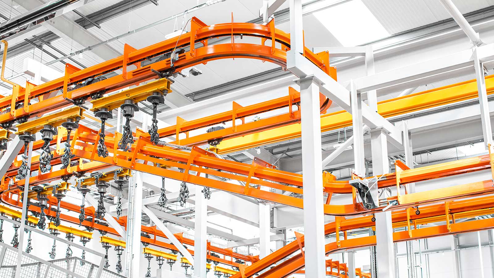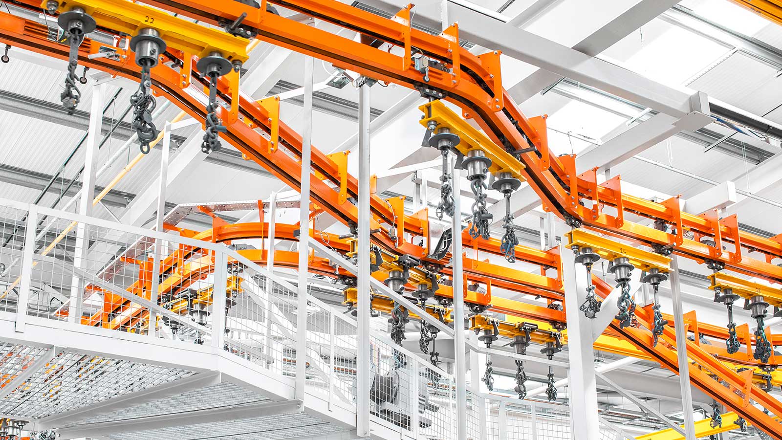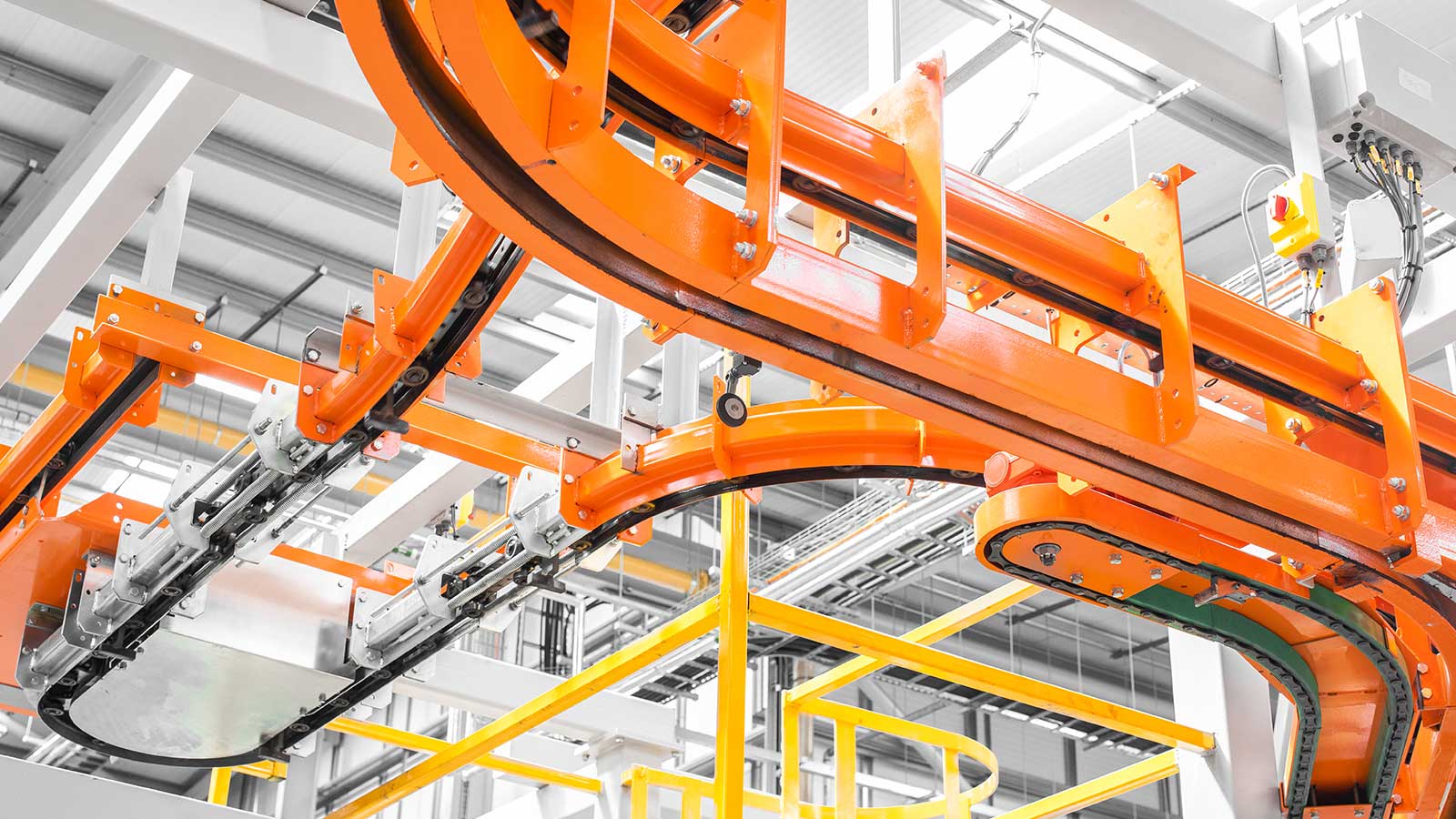 Una gama de transportadores aéreos de cadena "motorizados y libres" diseñados con la flexibilidad necesaria para dirigir el producto por diferentes rutas dentro del mismo sistema, según la secuencia de procesos. Las dos vías coextensivas (cadena y carro) del sistema transportador MCM Autotrack permiten la creación de zonas de almacenamiento intermedio y acumulación, la selección automática de rutas y los cambios de velocidad. Esto significa que cualquier tipo de producto puede identificarse (electrónicamente o con indicadores mecánicos) y enviarse automáticamente a destinos específicos, como líneas de planta de proceso, líneas de ensamblaje, estaciones de inspección y zonas de descarga, en cualquier secuencia deseada.