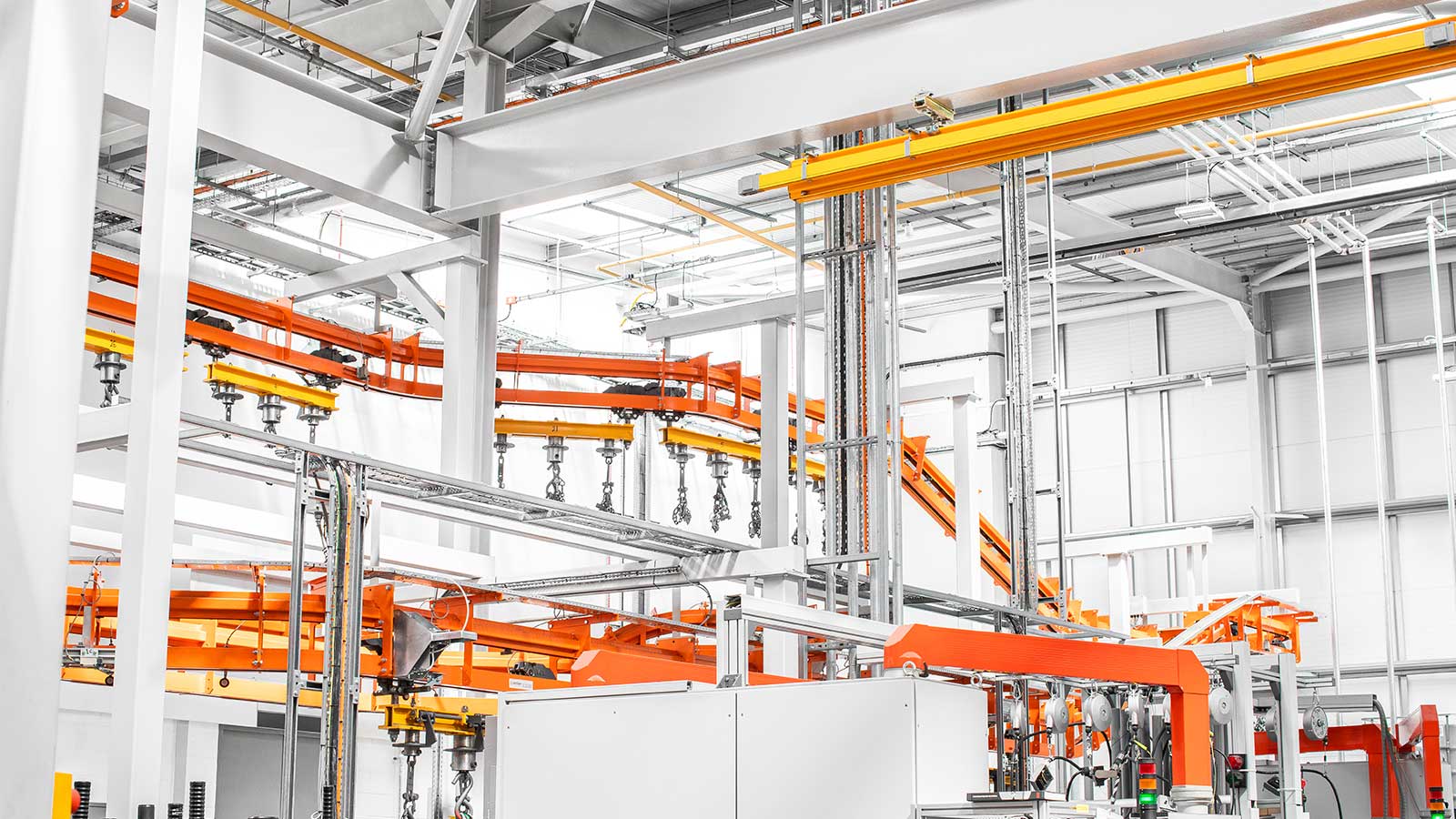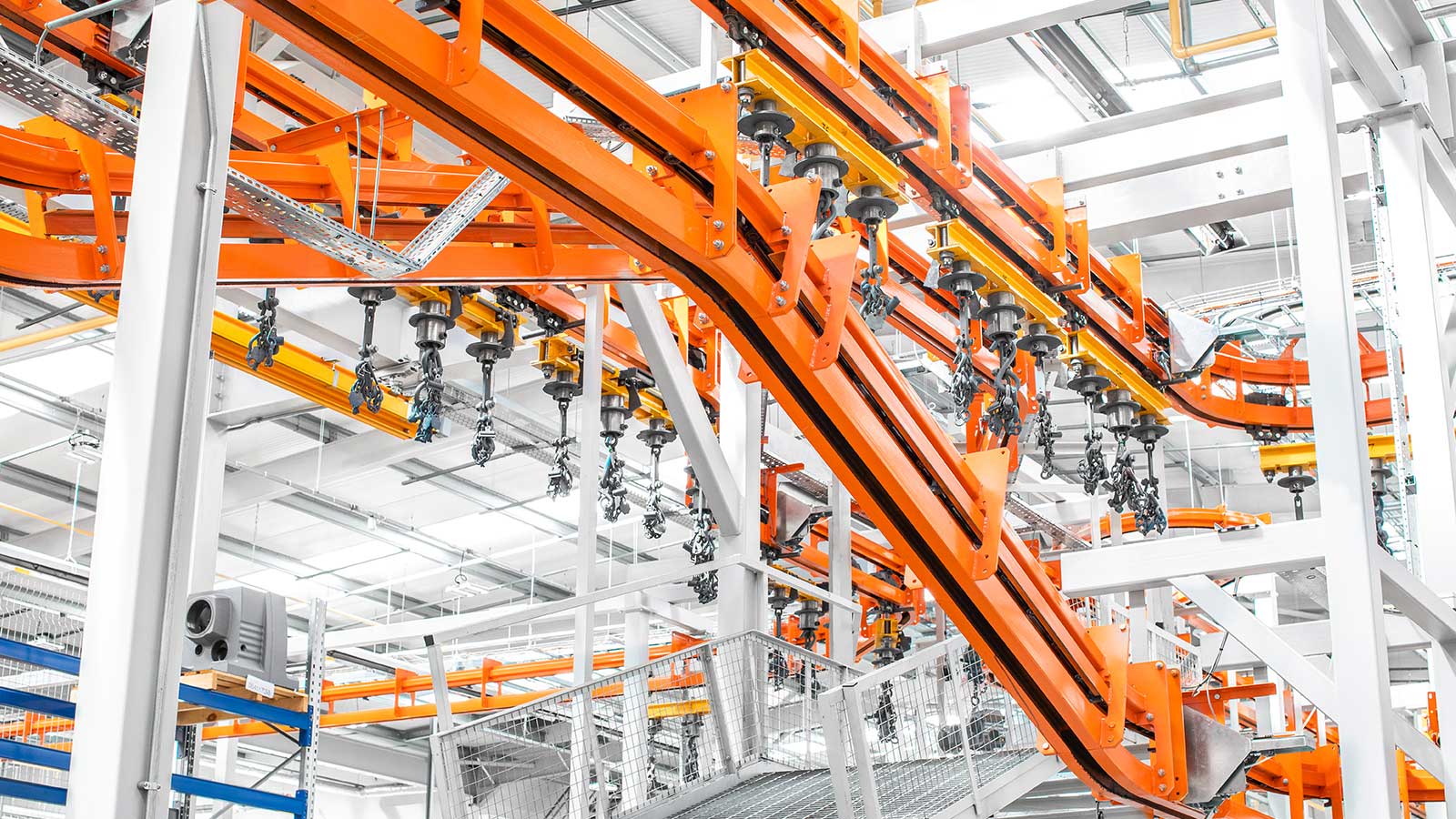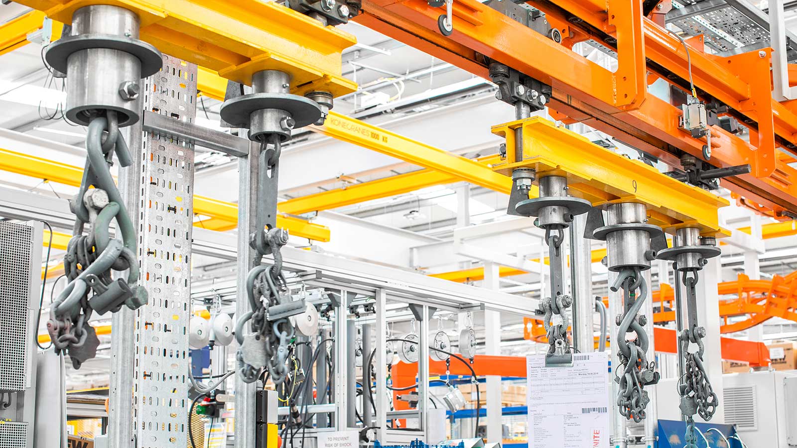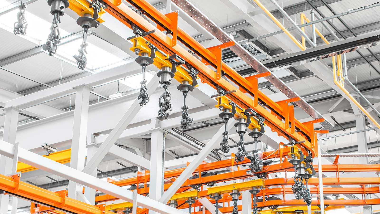Una gama de transportadores aéreos de cadena "motorizados y libres" diseñados con la flexibilidad necesaria para dirigir el producto por diferentes rutas dentro del mismo sistema, según la secuencia de procesos. Las dos vías coextensivas (cadena y carro) del sistema transportador MCM Autotrack permiten la creación de zonas de almacenamiento intermedio y acumulación, la selección automática de rutas y los cambios de velocidad. Esto significa que cualquier tipo de producto puede identificarse (electrónicamente o con indicadores mecánicos) y enviarse automáticamente a destinos específicos, como líneas de planta de proceso, líneas de ensamblaje, estaciones de inspección y zonas de descarga, en cualquier secuencia deseada.