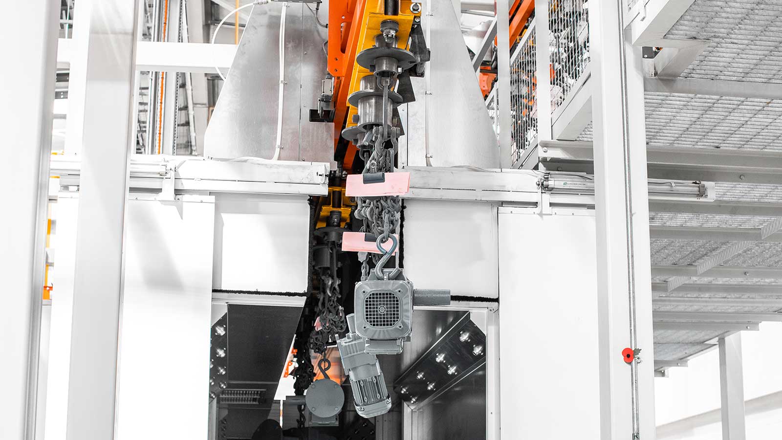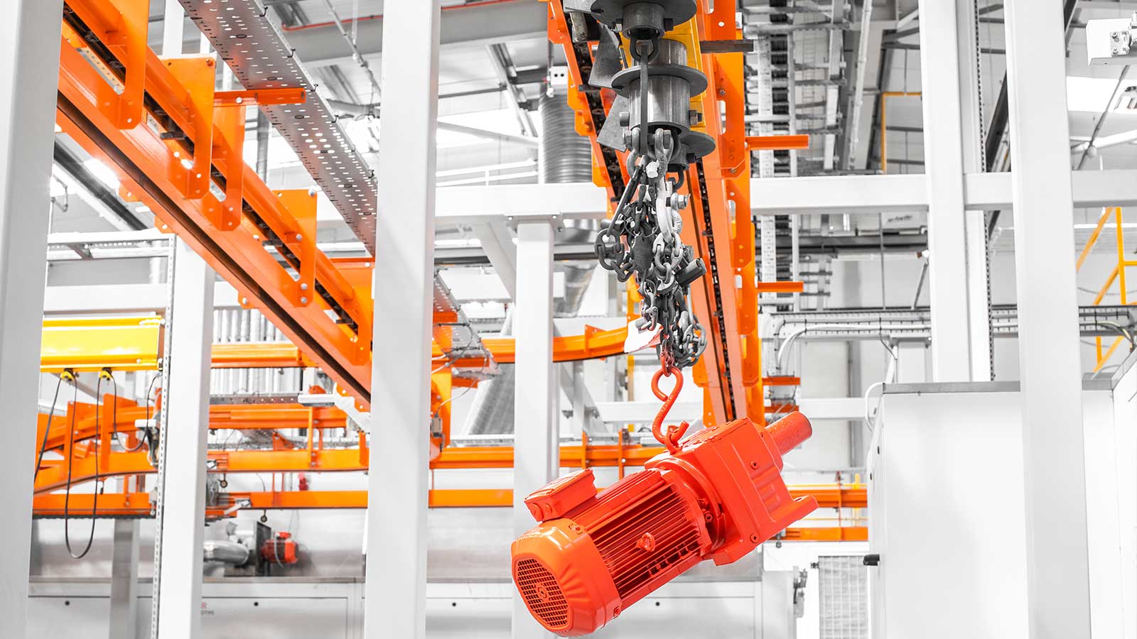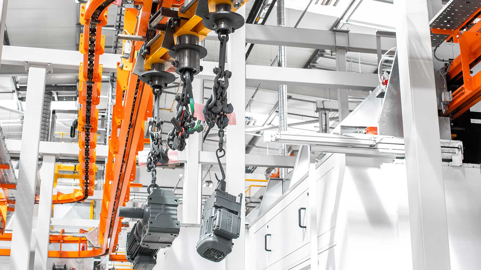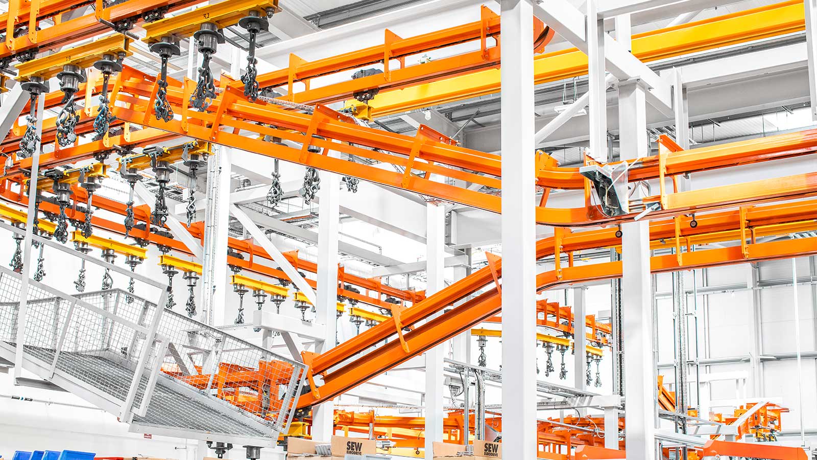Una gama de transportadores aéreos de cadena "motorizados y libres" diseñados con la flexibilidad necesaria para dirigir el producto por diferentes rutas dentro del mismo sistema, según la secuencia de procesos. Las dos vías coextensivas (cadena y carro) del sistema transportador MCM Autotrack permiten la creación de zonas de almacenamiento intermedio y acumulación, la selección automática de rutas y los cambios de velocidad. Esto significa que cualquier tipo de producto puede identificarse (electrónicamente o con indicadores mecánicos) y enviarse automáticamente a destinos específicos, como líneas de planta de proceso, líneas de ensamblaje, estaciones de inspección y zonas de descarga, en cualquier secuencia deseada.